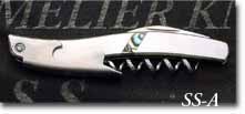 ステンレスのハンドル材の両面にアバロン(アワビの貝殻の内側)をワンポイントインレイしてあります。SS-Sはシンプルなオールステンレスハンドルです。